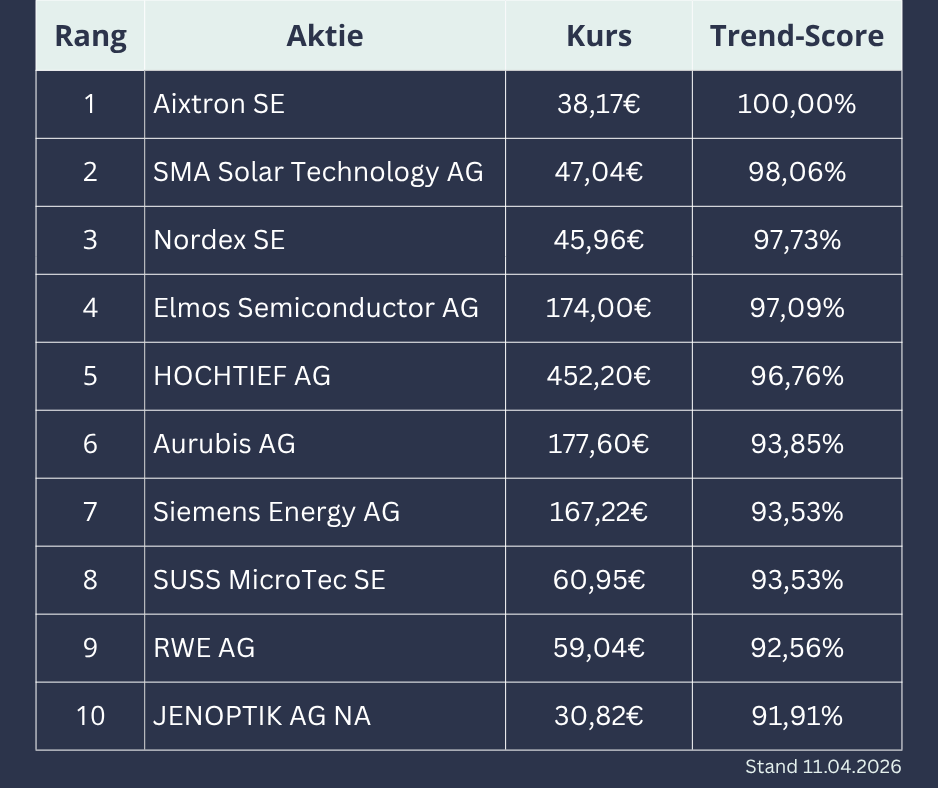 - Die technisch stärksten deutschen Aktien
